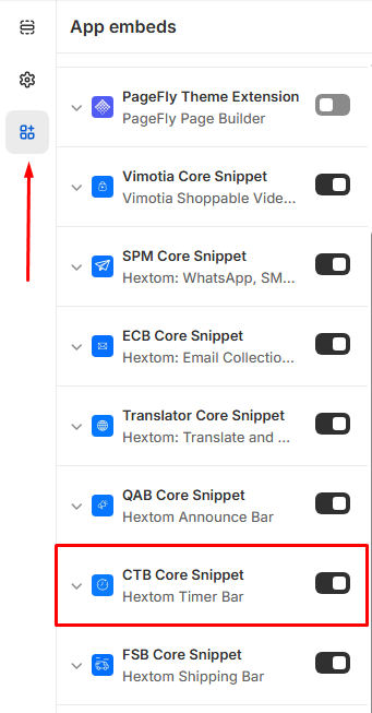 Most importantly, make sure that the CTB Core Snippet is also enabled on your theme editor settings under App embeds.