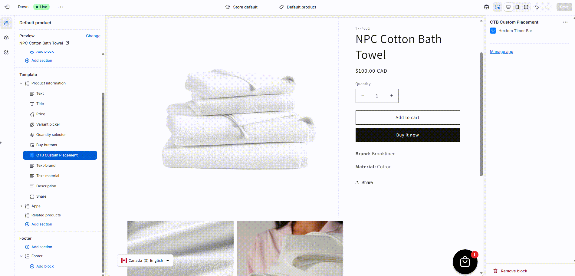 This guide will walk you through how to add the CTB to your theme using a theme app block for full control over its placement and visibility.
