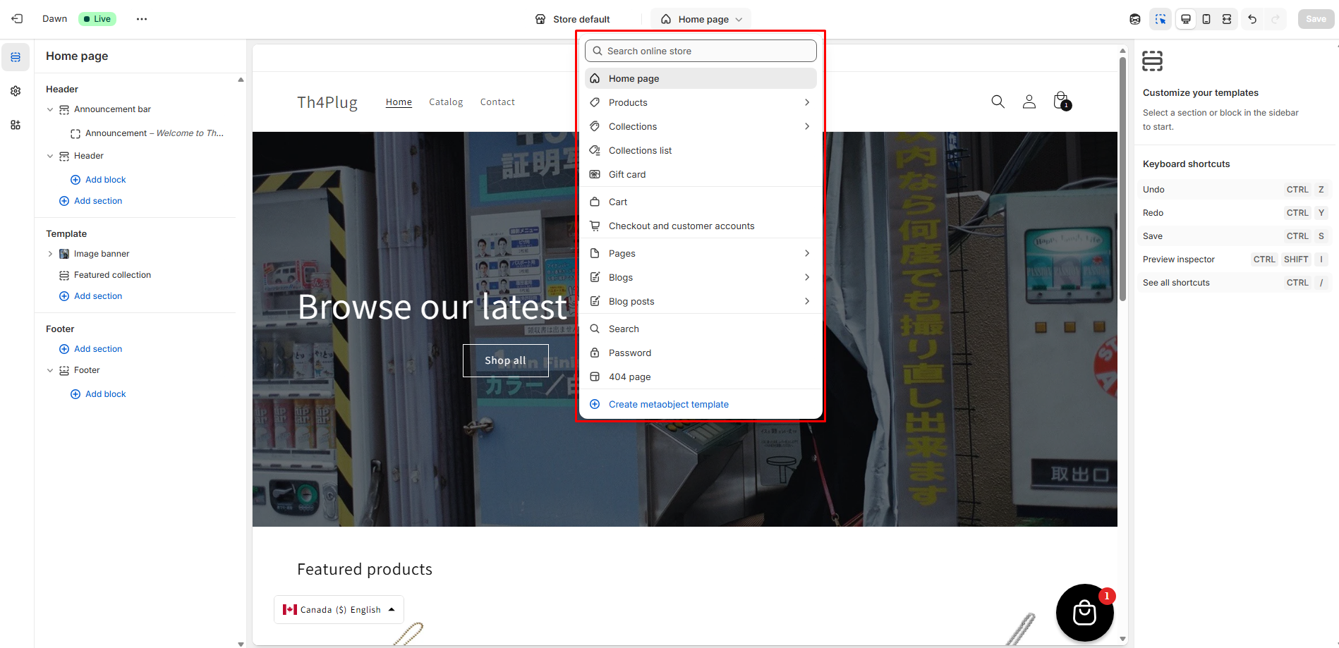 In the theme editor sidebar, choose the section where you’d like to display the countdown timer (for example Home page, Product page, or Collection Page).