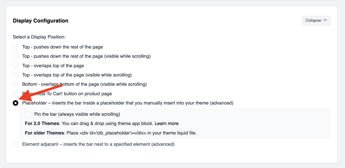 Note: Both options set up the theme to create a space that the bar will fill when it's loaded. If the bar is a little bigger or smaller, the space will adjust. You can edit the sizes from 33.5 or 44 to whatever value fits the bar that you've designed. 33.5 is for mobile view, and 44 is for desktop.